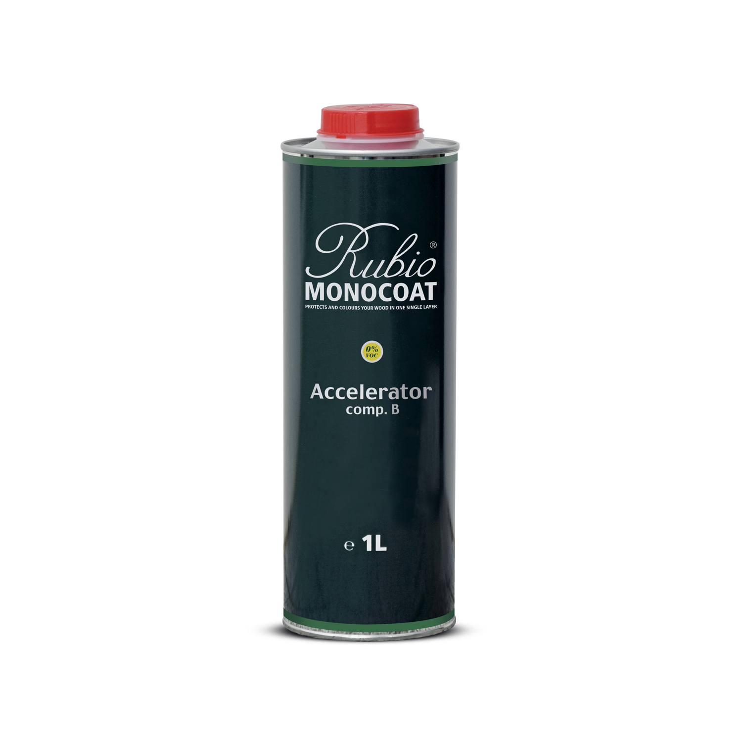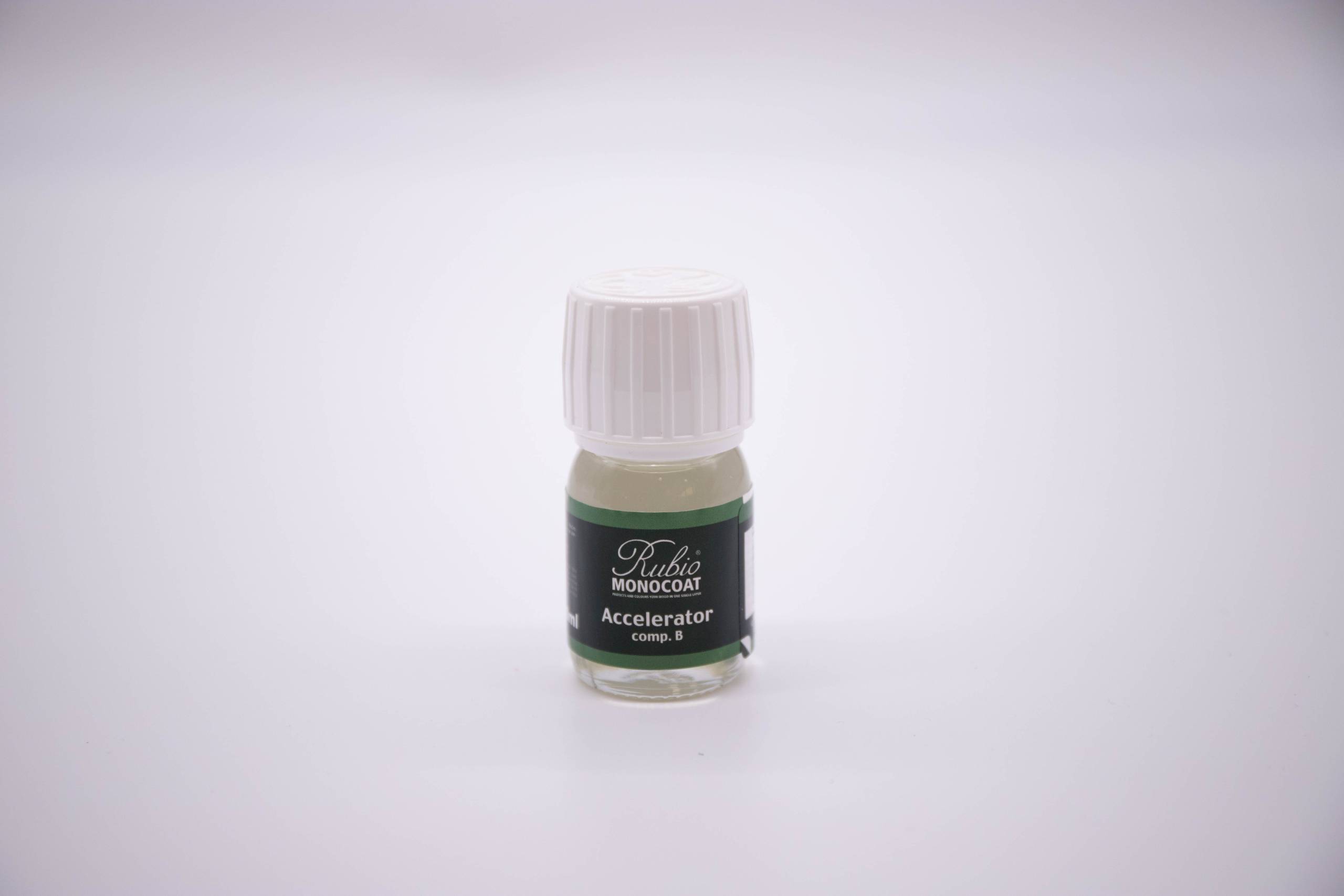 Rubio Monocoat Acelerador – Componente B para adicionar aos óleos e acelerar a secagem e o endurencimento e conseguir resultados mais resistentes. RMC Acelerador-Comp.B é compatível com todos os óleos da gama Rubio Monocoat, excluíndo o Rmc Invisível Oil System.